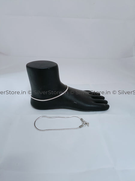 Silver Payal / Silver Anklet - 925 Silver - Rounded Tile Chain Pattern - AN-22