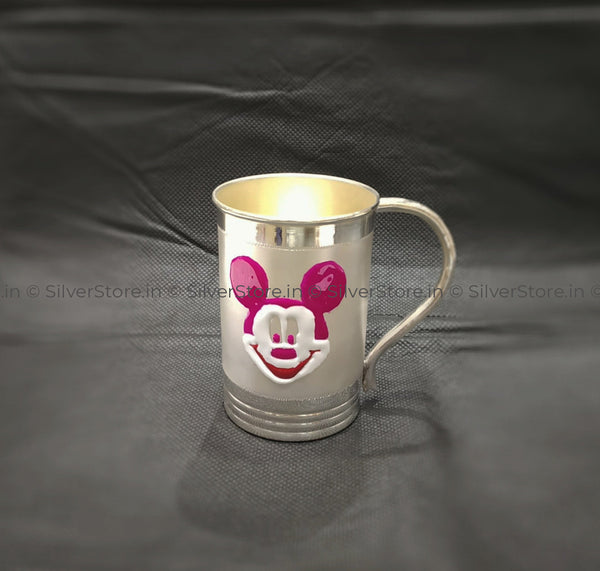 Silver Mickey Coffee Mugs - 925 Silver - Pink Color