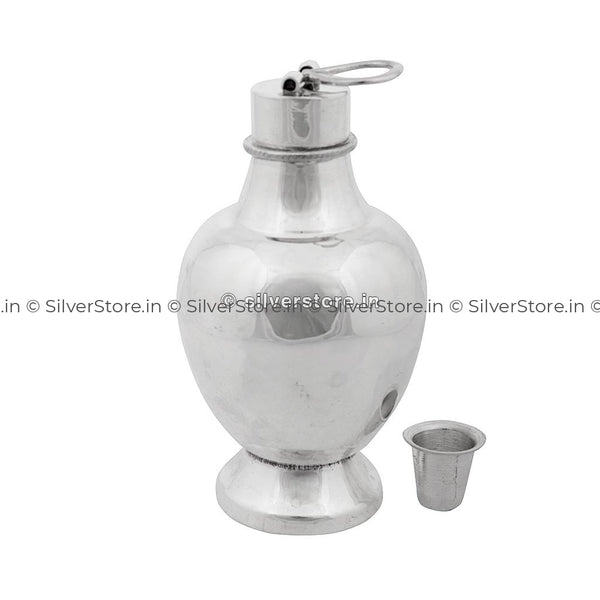 This Jaladhari Loti, made from soothing silver, has a simple yet graceful design. Perfect for Abhisheka of any god or goddess idol, this Loti is a valuable addition to your Pooja set.